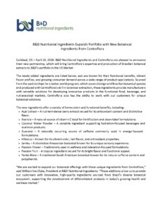 We’re excited to announce a new partnership between B&D Nutritional Ingredients and Grupo Centroflora!